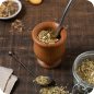 Possui ação digestiva e diurética natural, auxiliando na eliminação de líquidos e no alívio do inchaço abdominal.